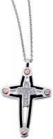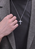 Фото «Мужской серебряный декоративный крестик на цепочке Zancan EXC292R-N с золотом, белыми сапфирами»