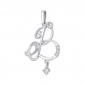 Серебряный кулон ''Буква В'' Zolotye uzory 90-63-0027-00 с кубическим цирконием