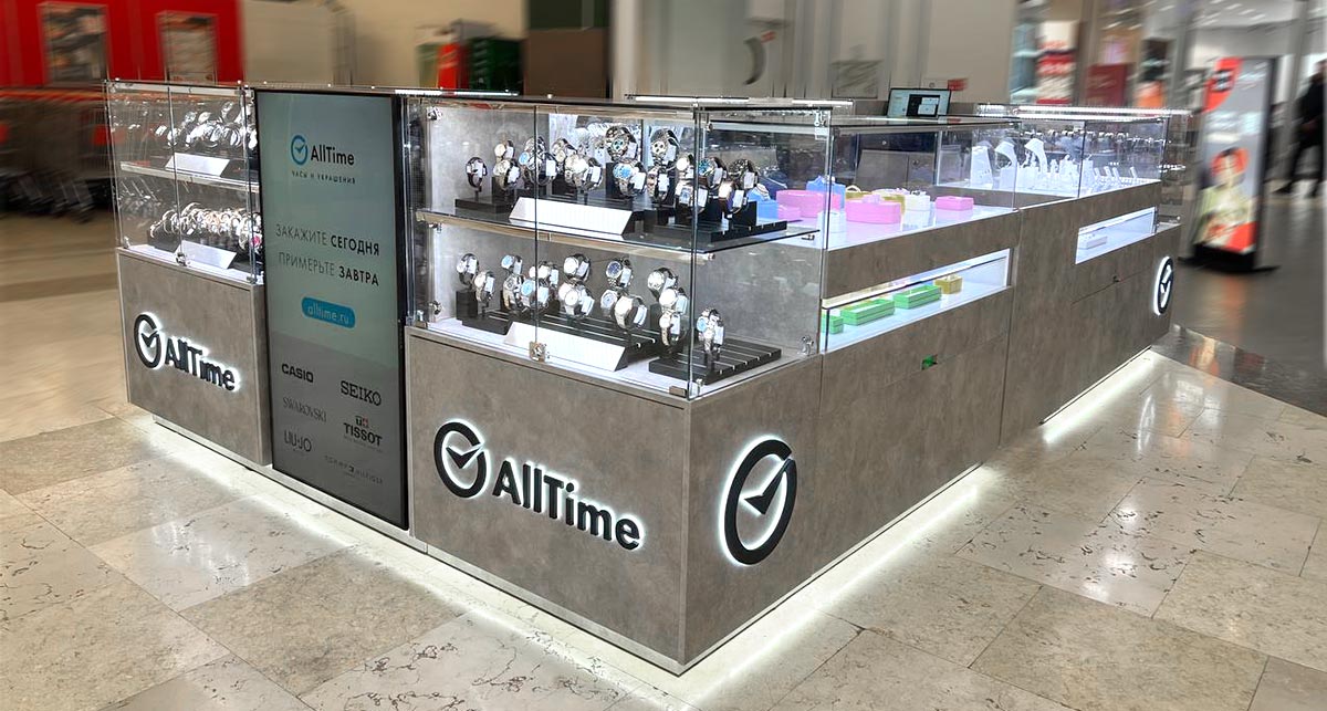 Островной магазин часов и украшений AllTime в ТРЦ Аура, г. Новосибирск