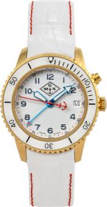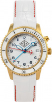 В механизме 7 камней. Запас хода 6 месяцев. Второй часовой пояс в 24-х часовом формате времени отображается центральной стрелкой. Круглый корпус из нержавеющей стали марки 03Х16Н15М3.