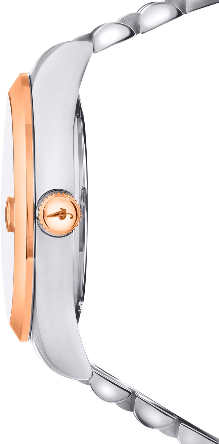 Окошко даты с увеличительным стеклом находится в положении 3 часа. Рифленая заводная головка. Стальной браслет с раскладывающейся застежкой.