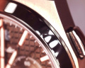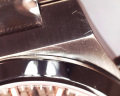 Часы-хронограф с секундомером. Стальной корпус. Фактурный циферблат с метками в виде штрихов дополнен рисунком в клетку. Окошко даты находится в положении 12 часов. Рифленая заводная головка. Браслет с раскладывающейся застежкой.