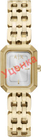 Женские кварцевые часы. Прямоугольный стальной корпус. Циферблат выполнен по технологии Sunray (солнечные лучи) и украшен накладным логотипом бренда. Метки в виде штрихов. Граненая заводная головка. Оригинальный стальной браслет с раскладывающейся застежкой.