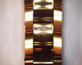 Женские наручные часы. Круглый стальной корпус. Перламутровый циферблат с метками в виде штрихов и точек, инкрустированных кристаллами. Рифленая заводная головка. Браслет с раскладывающейся застежкой.