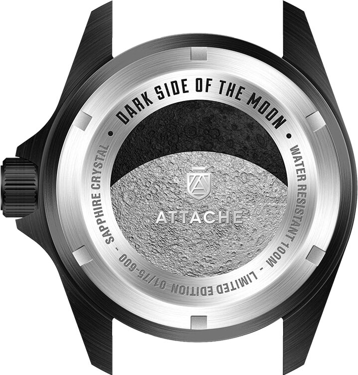 Круглый стальной корпус. Метки в виде арабских цифр штрихов. Люминесцентное покрытие Super-LumiNova, которое светится в темноте после непродолжительной зарядки на свету. Завинчивающаяся рифленая заводная головка с защитой. Завинчивающаяся задняя крышка с текстурой, напоминающей поверхность луны.
