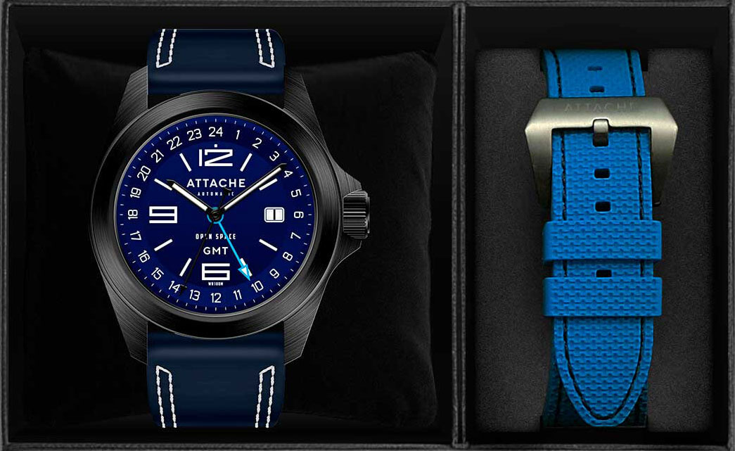 Российские механические наручные часы ATTACHE OPEN-SPACE-GMT-BBLUE