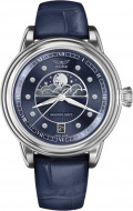Женские кварцевые часы. Лимитированная серия — 950 экземпляров. В механизме 13 камней. Круглый стальной корпус. Циферблат выполнен по технологии Sunray (солнечные лучи). Облака на циферблате украшены перламутровыми вставками. Метки в виде точек инкрустированы бриллиантами.