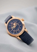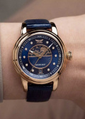 Лимитированная серия — 950 экземпляров. Женские наручные часы. В механизме 13 камней. Запас хода до 54 месяцев. Круглый стальной корпус. Гильошированный в центре циферблат в зоне меток выполнен по технологии Sunray (солнечные лучи).