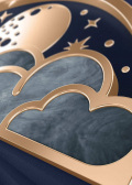 Метки в виде точек. Окошко даты находится в положении 6 часов. Облака на циферблате украшены перламутровыми вставками. Антибликовое покрытие на сапфировом стекле позволяет с легкостью узнать время даже при ярком солнце.