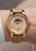 Лимитированная серия — 950 экземпляров. Женские наручные часы. В механизме 13 камней. Запас хода до 54 месяцев. Круглый стальной корпус. Гильошированный в центре циферблат в зоне меток выполнен по технологии Sunray (солнечные лучи).