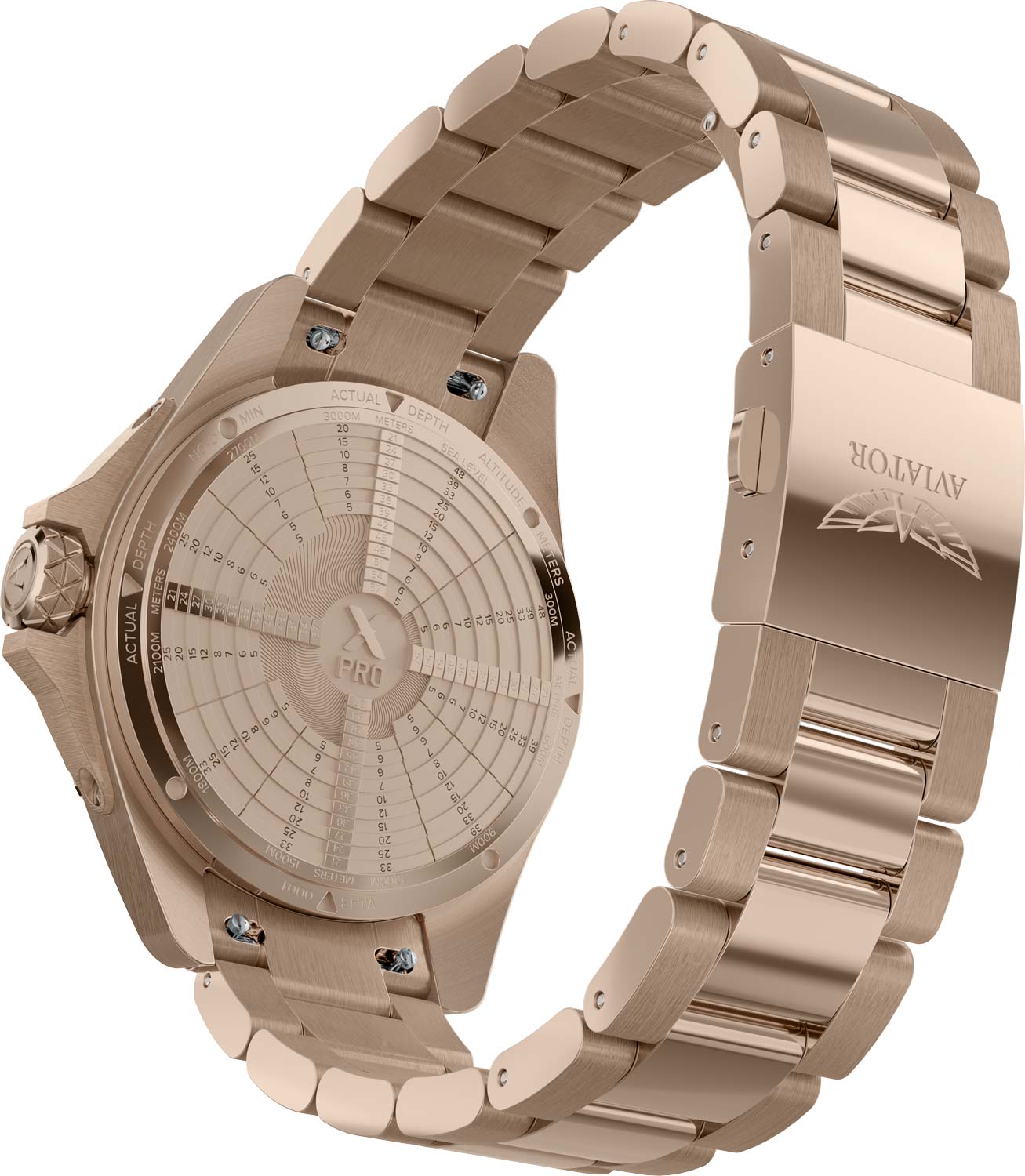 На заднюю крышку корпуса нанесена шкала. Благодаря тонкой отделке она хорошо видна и проста в использовании. На крышке приводится таблица бездекомпрессионного предела при погружении в воду на высоте – она призвана помочь дайверам рассчитать безопасное время всплытия в высокогорных озерах.
