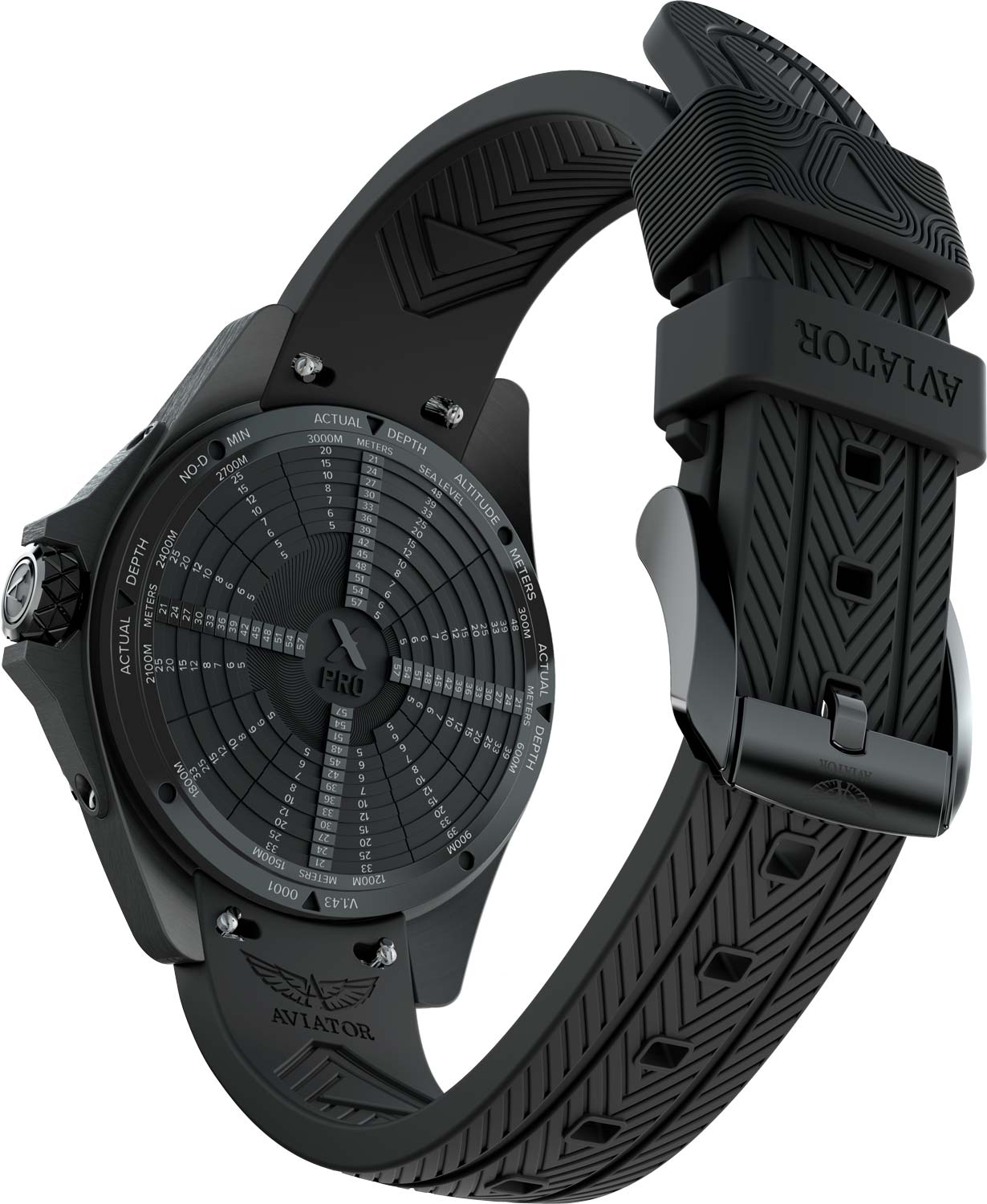 На заднюю крышку корпуса нанесена шкала. Благодаря тонкой отделке она хорошо видна и проста в использовании. На крышке приводится таблица бездекомпрессионного предела при погружении в воду на высоте – она призвана помочь дайверам рассчитать безопасное время всплытия в высокогорных озерах.