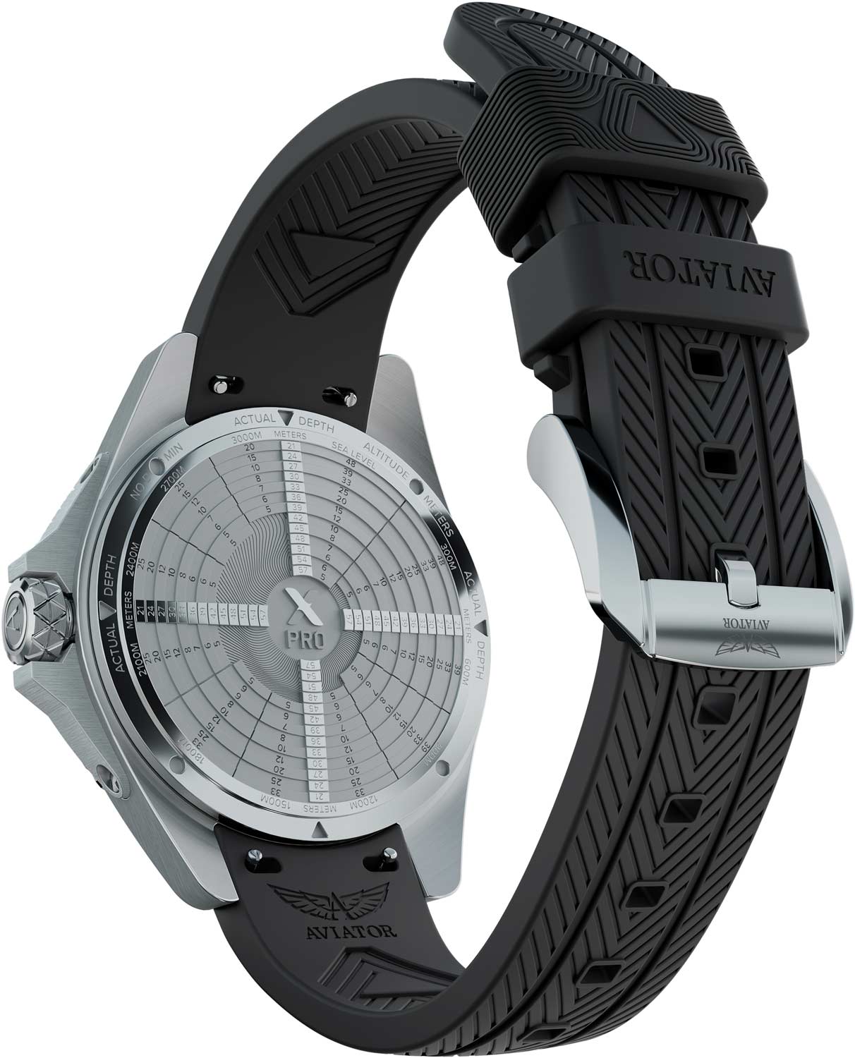 На заднюю крышку корпуса нанесена шкала. Благодаря тонкой отделке она хорошо видна и проста в использовании. На крышке приводится таблица бездекомпрессионного предела при погружении в воду на высоте – она призвана помочь дайверам рассчитать безопасное время всплытия в высокогорных озерах.