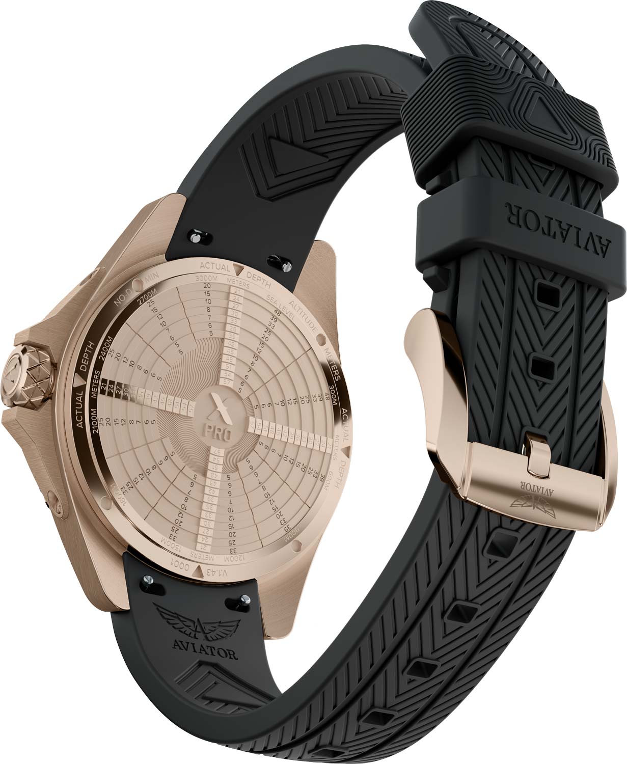 На заднюю крышку корпуса нанесена шкала. Благодаря тонкой отделке она хорошо видна и проста в использовании. На крышке приводится таблица бездекомпрессионного предела при погружении в воду на высоте – она призвана помочь дайверам рассчитать безопасное время всплытия в высокогорных озерах.