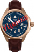 Мужские механические авиаторские часы Airacobra 43 Auto. В механизме 26 камней, запас хода до 38 часов. Метки в виде арабских цифр. Окошко даты. Антибликовое покрытие на сапфировом стекле позволяет с легкостью узнать время даже при ярком солнце. Рифленая заводная головка. Кожаный ремешок.