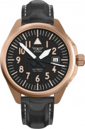 Мужские механические авиаторские часы Airacobra 43 Auto. В механизме 26 камней, запас хода до 38 часов. Метки в виде арабских цифр. Окошко даты. Антибликовое покрытие на сапфировом стекле позволяет с легкостью узнать время даже при ярком солнце. Рифленая заводная головка. Кожаный ремешок.