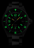 36 микрогазовых трубок на циферблате, часовой, минутной, секундной стрелках и внутреннем безеле для удобства считывания показаний в ночное время. Микротрубки способны светиться до 25 лет без какой-либо энергии.