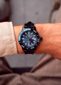 Окошко даты с увеличительным стеклом находится в положении 3 часа. Задняя крышка с сапфировым стеклом. Завинчивающаяся заводная головка. Каучуковый ремешок с классической застежкой.
