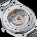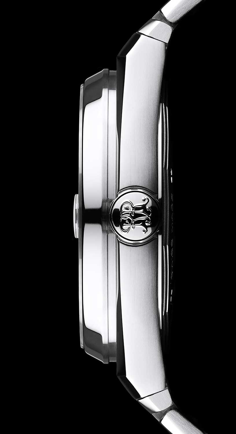 Завинчивающаяся заводная головка. Прозрачная задняя крышка с сапфировым стеклом. Надежный стальной браслет с раскладывающейся застежкой.
