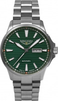 Метки и стрелки с люминесцентным покрытием, которое светится в темноте после непродолжительной зарядки на свету. Рифленая заводная головка с защитой. Завинчивающаяся прозрачная задняя крышка. Титановый браслет.
