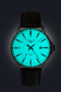 Круглый титановый корпус. Прямоугольные стрелки в стиле Baton и весь циферблат с люминесцентным
