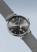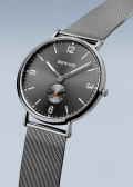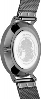 Секундная стрелка вынесена на отдельный циферблат. Рифленая заводная головка. Стальной браслет миланского плетения. Застежка с фиксатором.