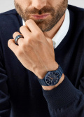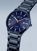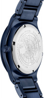 Рифленая заводная головка. Завинчивающаяся задняя крышка. Титановый браслет с раскладывающейся застежкой. В комплект входит одно дополнительное звено.