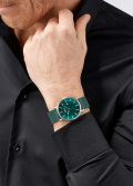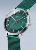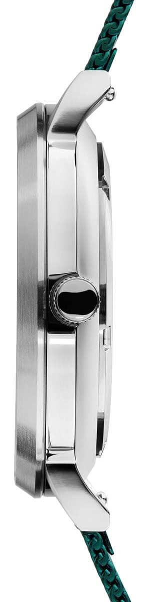 Окошко даты находится в положении 3 часа. Рифленая заводная головка. Завинчивающаяся задняя крышка. Стальной браслет миланского плетения. Застежка с фиксатором.