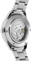 Рифленая заводная головка. Завинчивающаяся прозрачная задняя крышка. Стальной браслет с раскладывающейся застежкой.