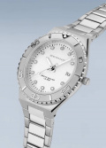 Окошко даты находится в положении 3 часа. Рифленая заводная головка. Задняя крышка крепится на винтах. Стальной браслет с раскладывающейся застежкой.