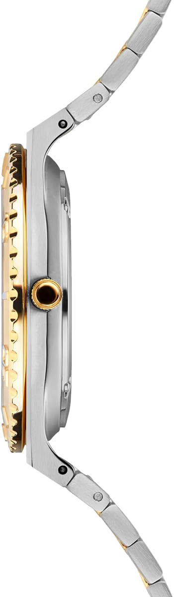 Окошко даты находится в положении 3 часа. Рифленая заводная головка. Задняя крышка крепится на винтах. Стальной браслет с раскладывающейся застежкой.