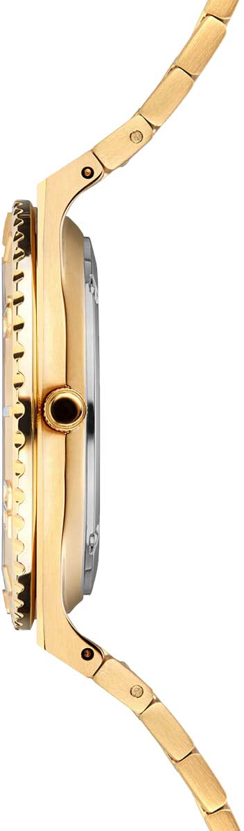Окошко даты находится в положении 3 часа. Рифленая заводная головка. Задняя крышка крепится на винтах. Стальной браслет с раскладывающейся застежкой.