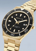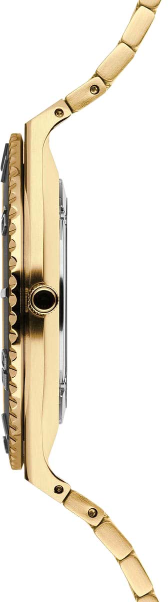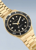Метки в виде точек и штрихов. Окошко даты находится в положении 3 часа. Рифленая заводная головка. Задняя крышка крепится на винтах. Стальной браслет с раскладывающейся застежкой.