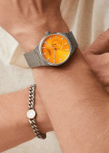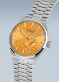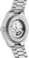 Секундная стрелка вынесена на отдельный циферблат. Рифленая заводная головка. Завинчивающаяся прозрачная задняя крышка. Стальной браслет с раскладывающейся застежкой.
