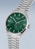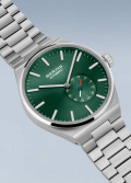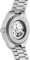 Секундная стрелка вынесена на отдельный циферблат. Рифленая заводная головка. Завинчивающаяся прозрачная задняя крышка. Стальной браслет с раскладывающейся застежкой.