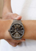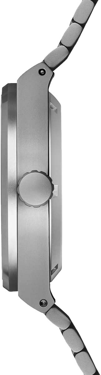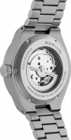 Секундная стрелка вынесена на отдельный циферблат. Рифленая заводная головка. Завинчивающаяся прозрачная задняя крышка. Стальной браслет с раскладывающейся застежкой.