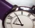 Женские наручные часы с круглым корпусом. Метки в виде римских цифр. Кожаный ремешок с классической застежкой.