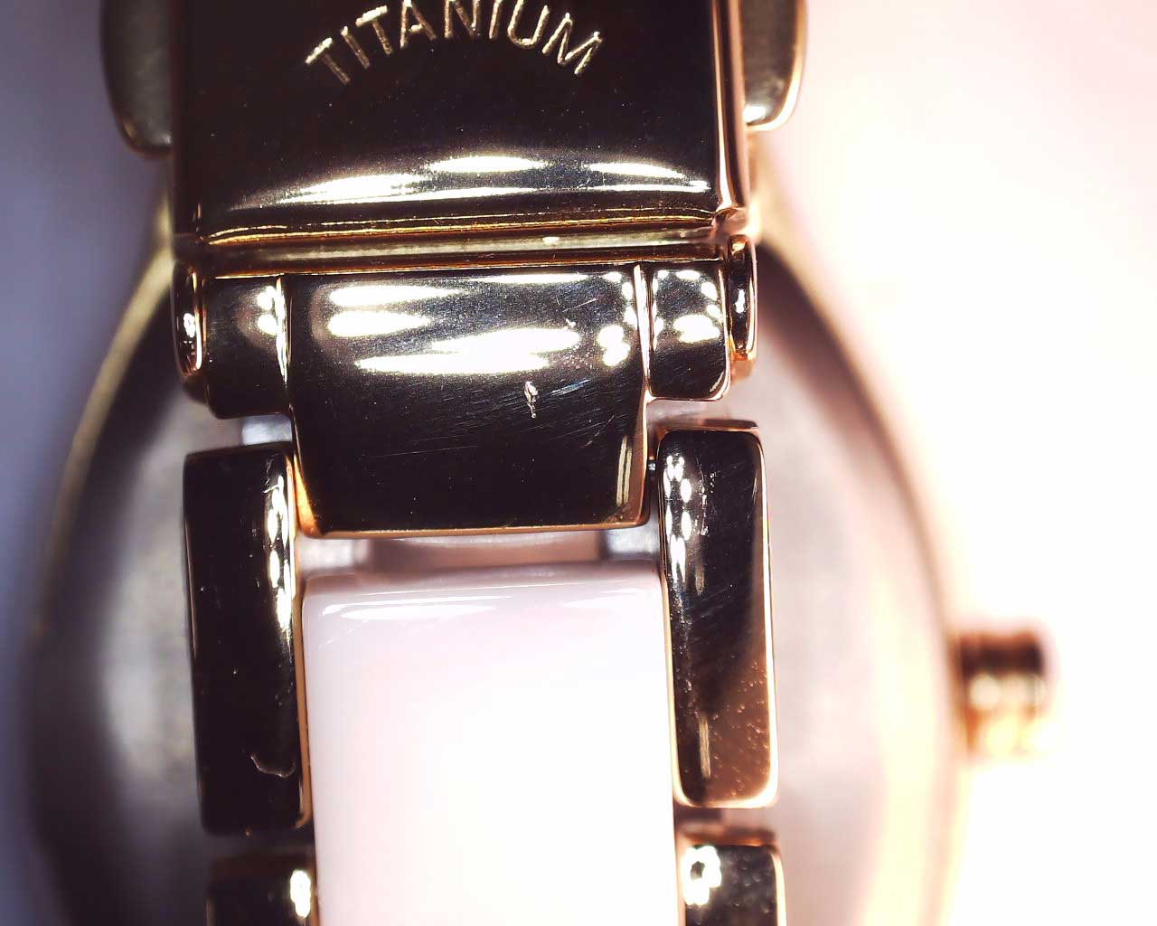Женские наручные часы Ceramic. Корпус из титана. Циферблат с метками в виде штрихов и арабской цифрой 12. Браслет с раскладывающейся застежкой.
