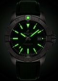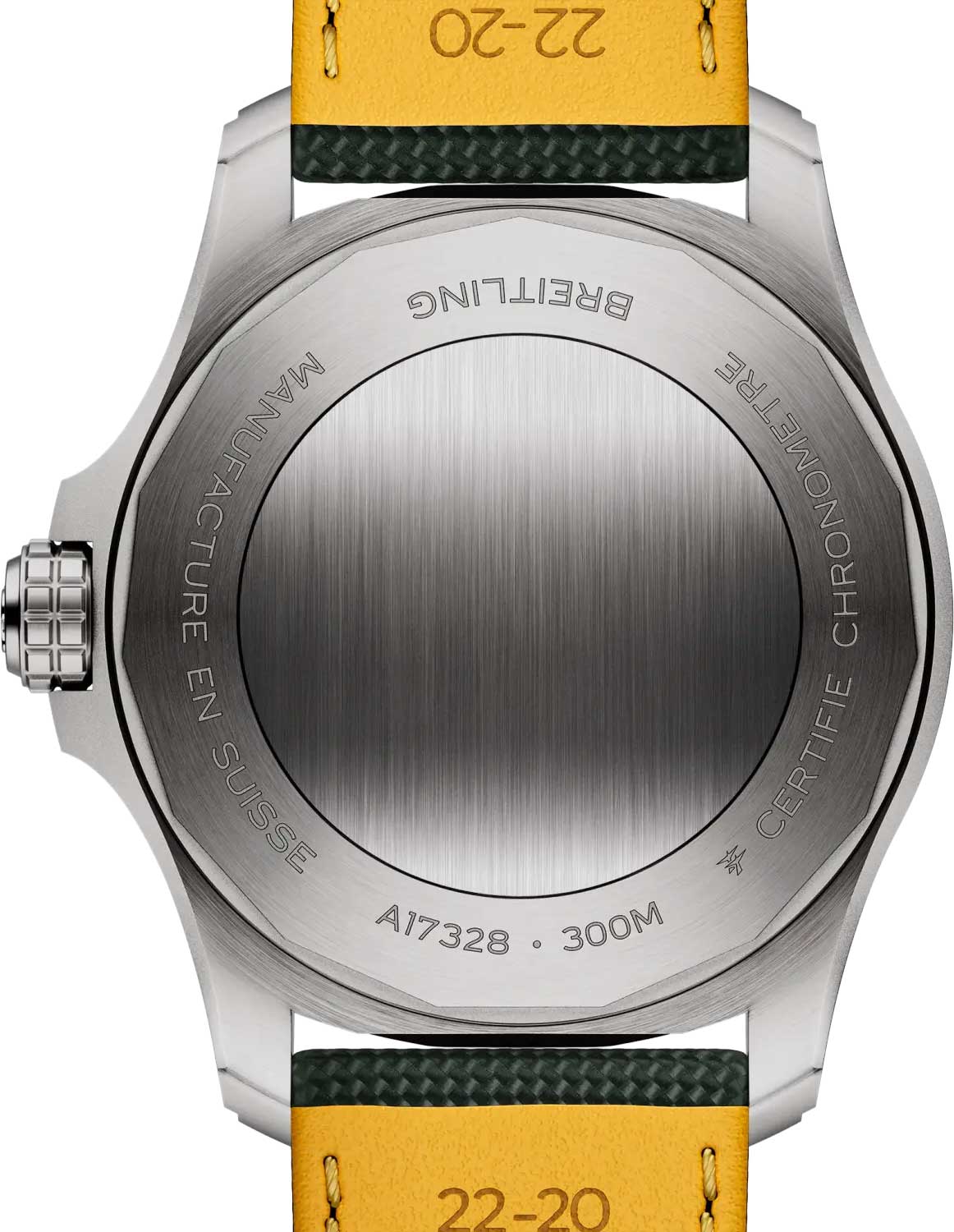 Безель вращается в одном направлении. Завинчивающаяся заводная головка с защитой и двойной прокладкой. Завинчивающаяся задняя крышка. Ремешок с раскладывающейся застежкой.