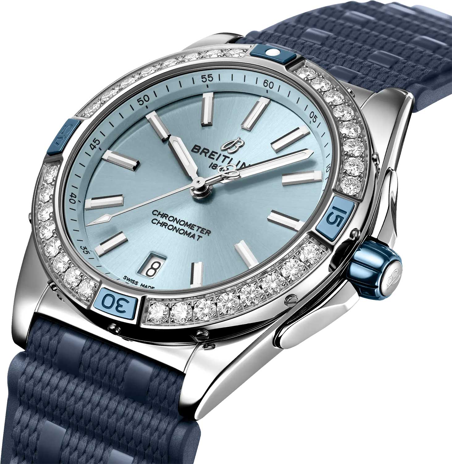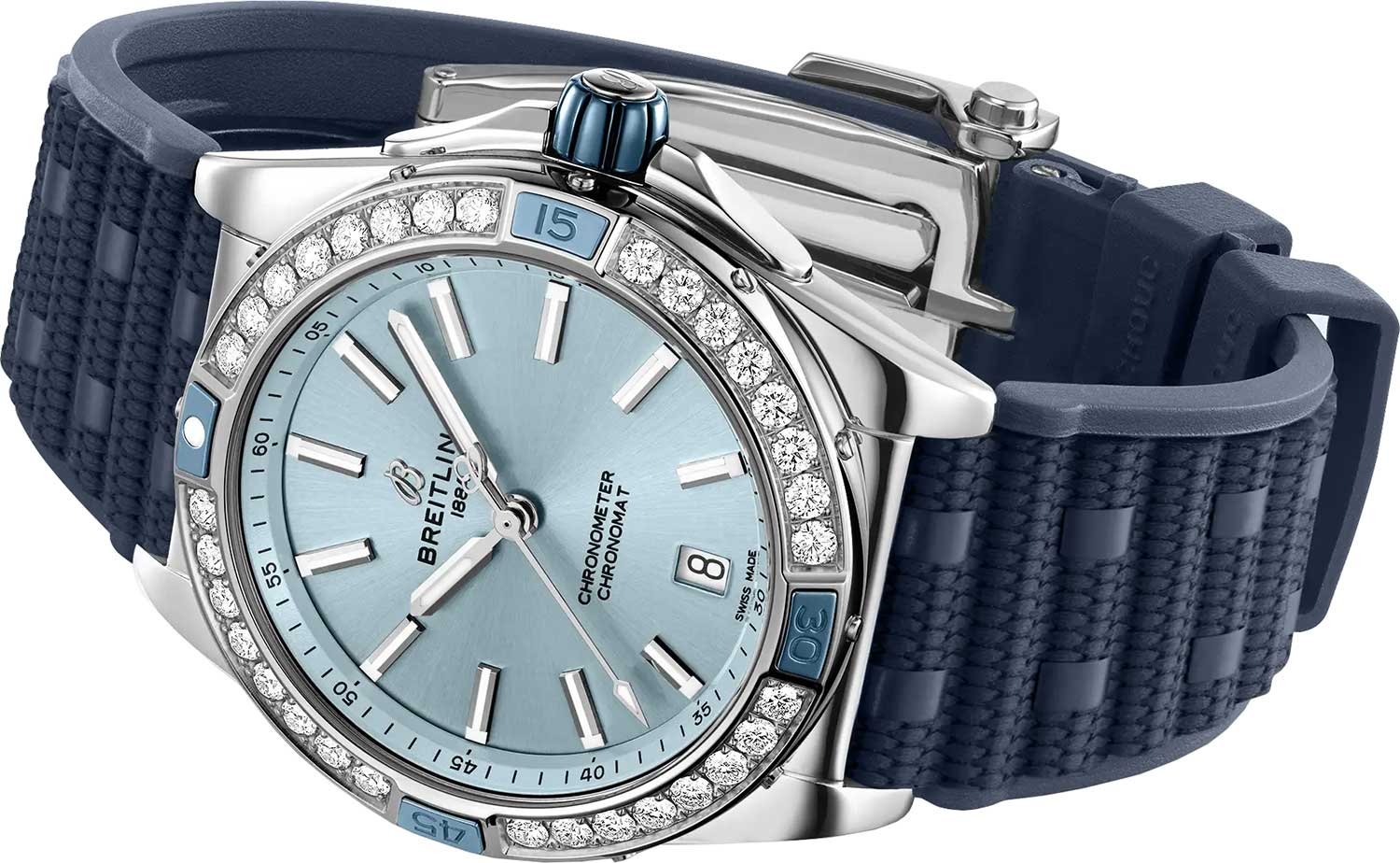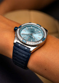 Заводная головка и элементы на безеле выполнены из керамики. Безель вращается в одном направлении. Заводная головка с защитой и двойной прокладкой. Завинчивающаяся задняя крышка. Ремешок в стиле Rouleaux с раскладывающейся застежкой.