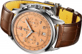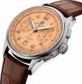 Часы-хронограф с секундомером и тахиметром. Секундомер с точностью 1/4с и временем измерения 30мин отображается центральной стрелкой. Секундная стрелка вынесена на отдельный циферблат. Циферблат с накладными метками в виде арабских цифр защищен прочным сапфировым стеклом. Антибликовое покрытие стекла позволит вам без труда узнать время даже в самый солнечный день.