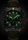 Безель вращается в одном направлении. Завинчивающаяся заводная головка с защитой и двойной прокладкой. Завинчивающаяся прозрачная задняя крышка с сапфировым стеклом. Ремешок с раскладывающейся застежкой.