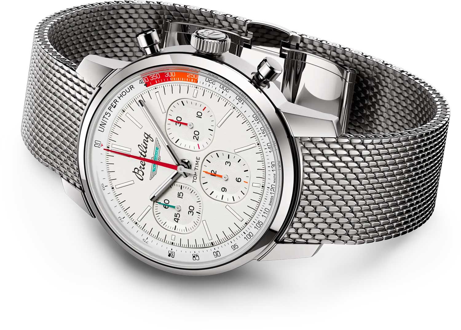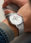 Заводная головка с двойной прокладкой. Завинчивающаяся прозрачная задняя крышка с сапфировым стеклом. Браслет миланского плетения с раскладывающейся застежкой. Застежка с системой блокировки.