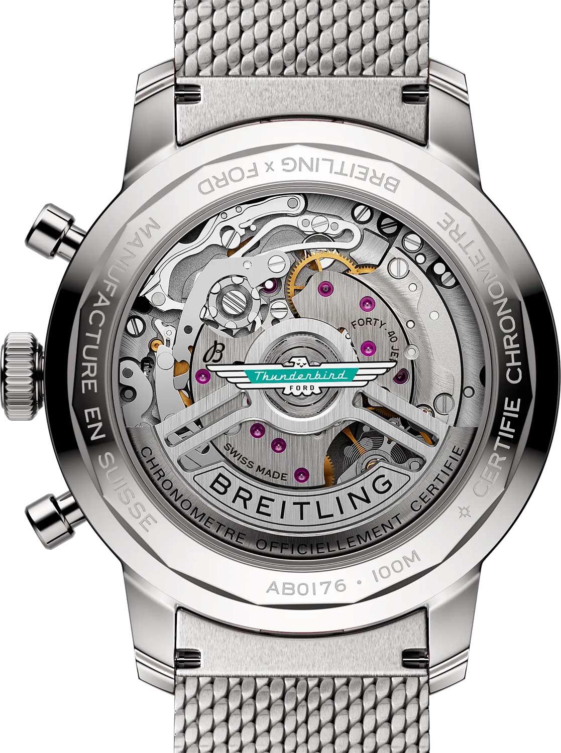В мануфактурном швейцарском механизме 34 камня, частота 28800 полуколебаний в час. Запас хода примерно 70 часов. Возможность ручного завода. Хронометр сертифицирован C.O.S.C.
