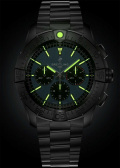 Безель вращается в одном направлении. Завинчивающаяся заводная головка с защитой и двойной прокладкой. Завинчивающаяся прозрачная задняя крышка с сапфировым стеклом. Браслет с раскладывающейся застежкой.