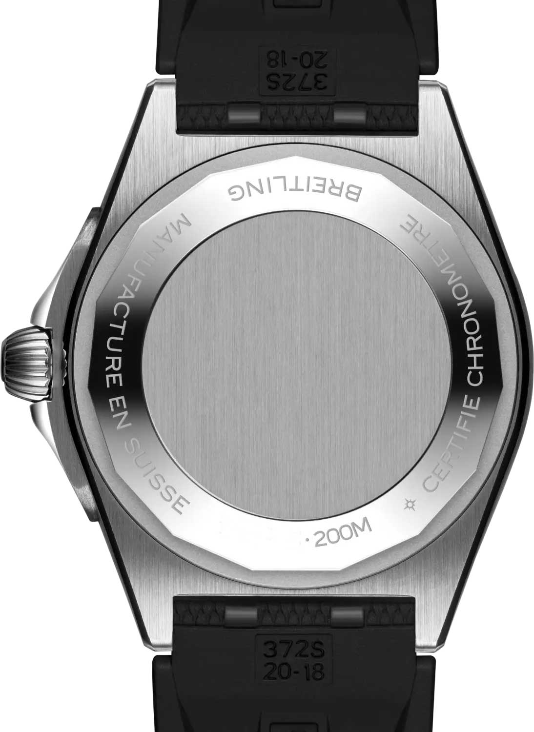 Окошко даты находится в положении 6 часов. Безель вращается в одном направлении. Завинчивающаяся заводная головка с защитой и двойным уплотнением. Завинчивающаяся задняя крышка. Ремешок с раскладывающейся застежкой.