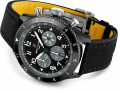 Часы-хронограф с секундомером. Секундомер с временем измерения 12ч отображается центральной стрелкой. Секундная стрелка вынесена на отдельный циферблат. Второй часовой пояс в 24-х часовом формате времени отображается дополнительной центральной стрелкой.