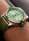 Циферблат выполнен по технологии Sunray (солнечные лучи) и защищен прочным сапфировым стеклом. Антибликовое покрытие стекла позволит вам без труда узнать время даже в самый солнечный день. Накладные метки в виде штрихов. Окошко даты находится в положении 6 часов.