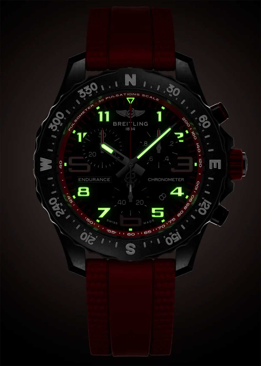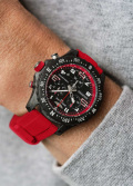 Часы-хронограф с секундомером. Секундомер с точностью 1/10с и временем измерения 30мин отображается центральной стрелкой. Секундная стрелка вынесена на отдельный циферблат. Пульсометр. Циферблат с метками в виде арабских цифр защищен прочным сапфировым стеклом.