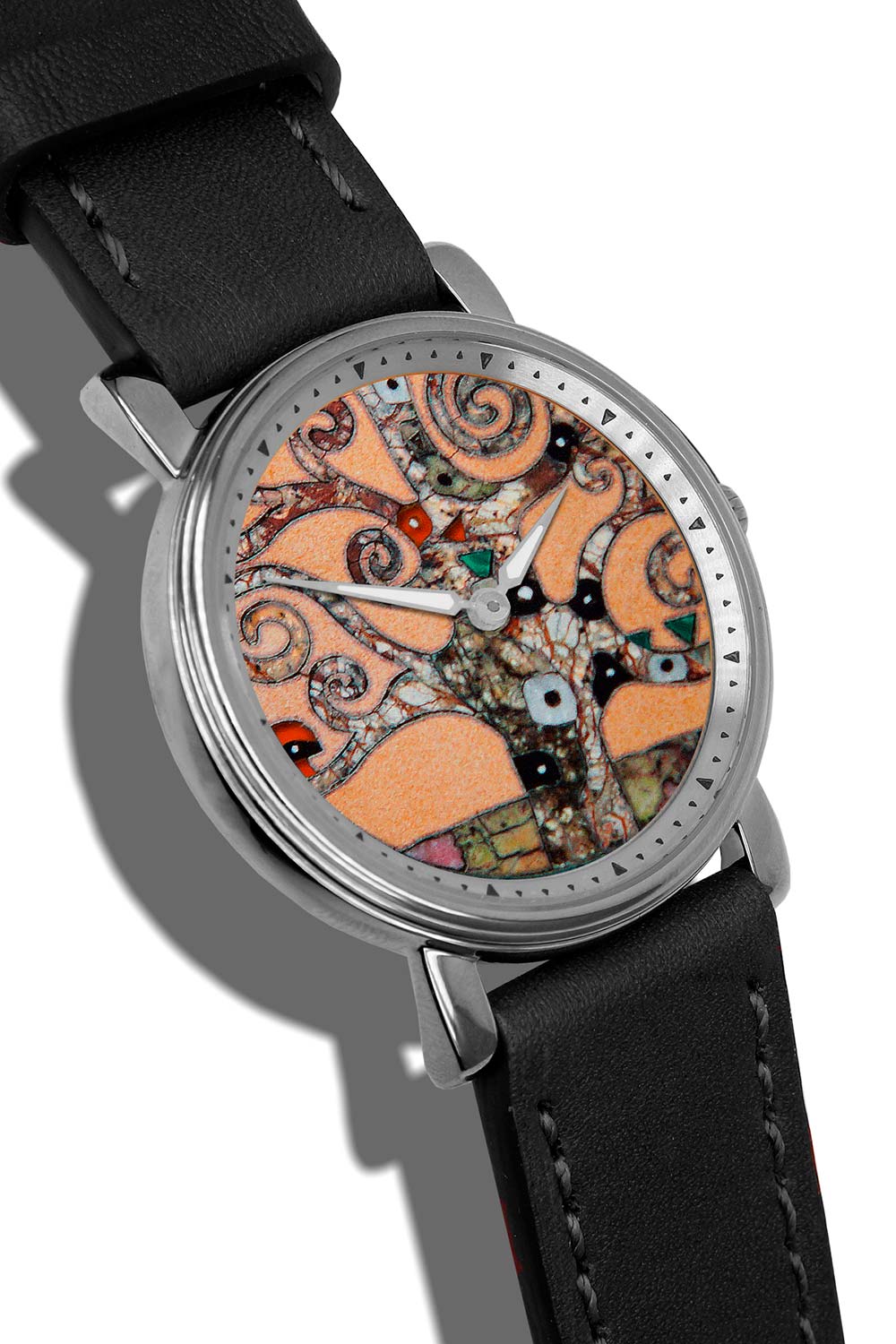 Мозаика выполнена по мотивам картины «Древо жизни» Густава Климта, австрийского художника и декоратора, одного из самых ярких представителей венского модерна, выполненной в характерном для художника «лоскутном» стиле с преобладанием яркого жизнерадостного золотистого цвета.